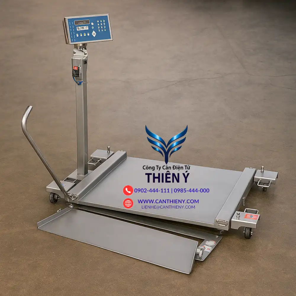 - Cân có bàn nâng hạ